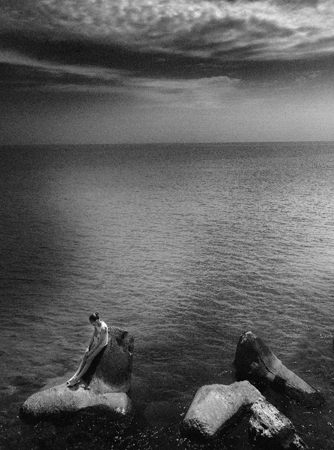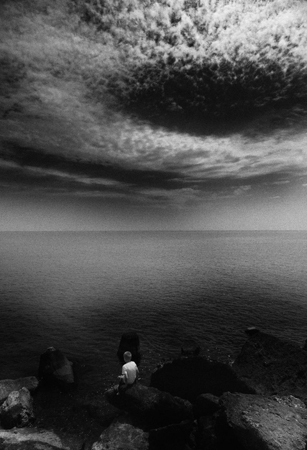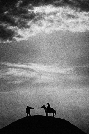 آسمان های عکسهای او پر شده از ابرهای دلهرهآور، آسمان قرار نیست در عکسهای عمودی او خالی باشن، ایستایی و خشونت کادر عمودی این حجم از تضاد بین تنالیته های خاکستری را چند برابر می کند،